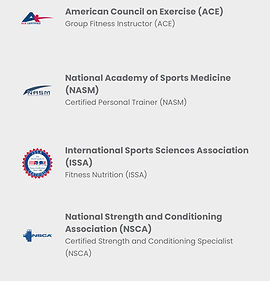 Certifications: ACE Certified, NASM, ISSA, NSCA